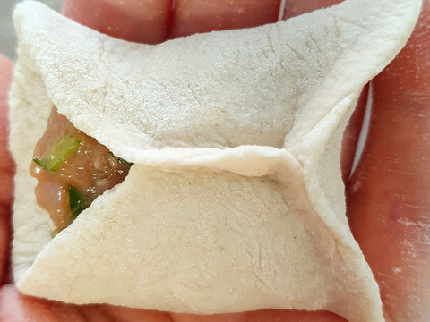 Isso porque as folhas, em grande quantidade, podem acabar deixando o recheio amargo. ** Você pode usar a pimenta-do-reino preta, se não tiver a branca. Mas reduza a quantidade, coloque apenas 1 pitada. *** Se não tiver processador, você pode triturar o frango com uma faca. DICA: Como fechar um guioza? Existem várias formas de fechá-lo. Uma maneira fácil é juntar dois pontos opostos da massa e, depois, juntar cada uma das duas abas formadas ao primeiro ponto de junção. Certifique-se de que esteja bem vedado e, assim, não haja possibilidade de vazar recheio.
