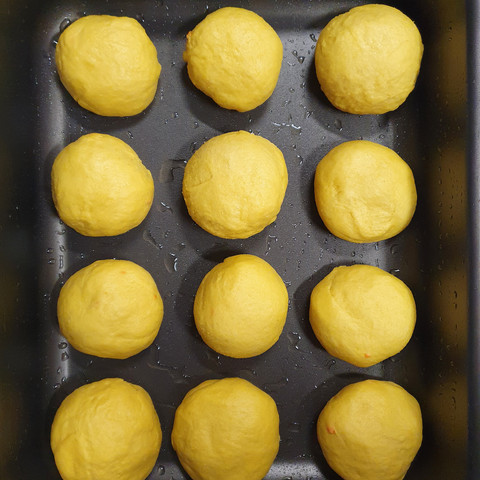 Em uma forma untada e polvilhada (se necessário), coloque os pães modelados a seu gosto e deixe-os crescer por mais 40 minutos**** ou até dobrar de volume.