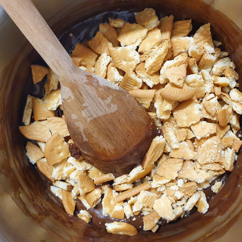 **Se preferir, depois de esfriar, divida a palha em porções e polvilhe-as com açúcar refinado, confeiteiro ou com chocolate em pó.